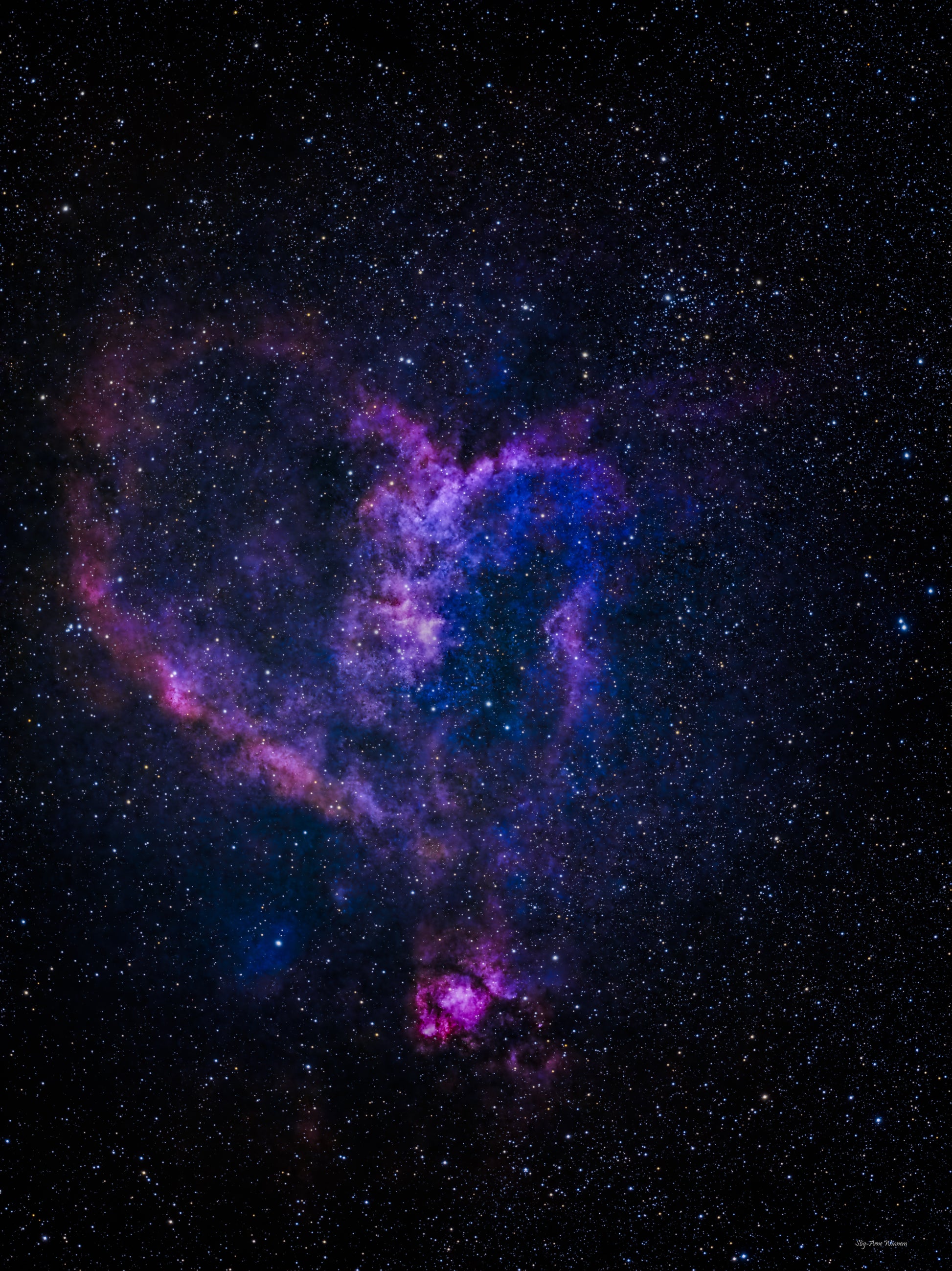 This picture was taken from our observatory in the mountain range of Sulitjelma, March 2024, Norway. The Heart Nebula is an emission nebula and is located in our galaxy, the Milky Way in constallation Cassiopeia. The light captured in this photo began its journey approximately 7,500 years ago.