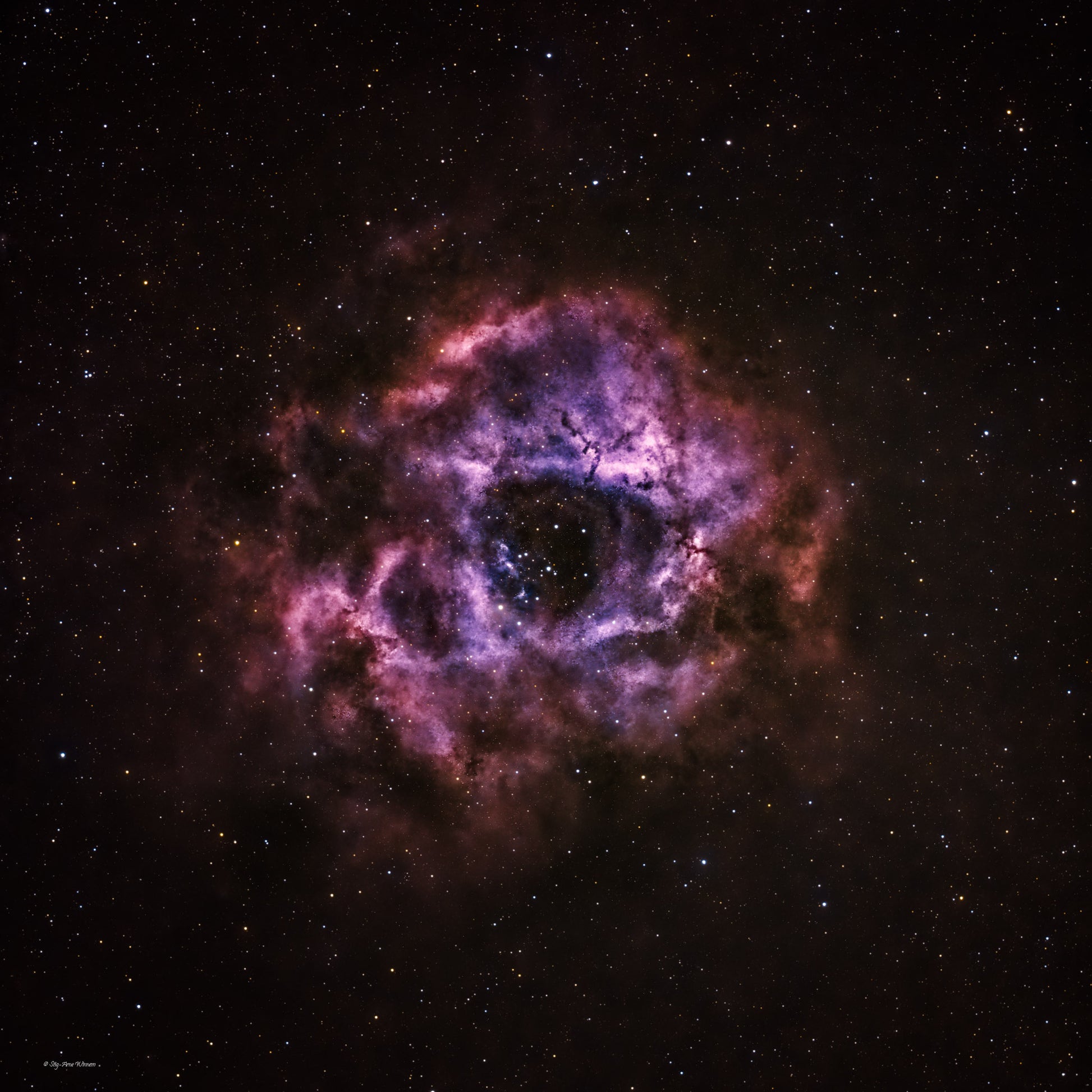 This picture was taken from our observatory in the mountains of Sulitjelma a winter night, March 2024. The Rosette Nebula is an emission nebula and is located in our galaxy, the Milky Way in constellation Cassiopeia.